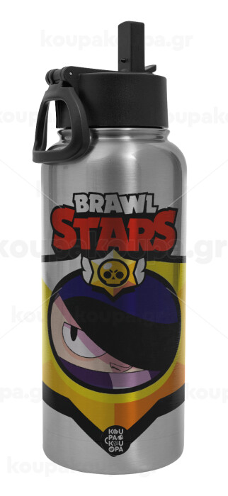 Brawl Stars Edgar, Metal mug thermo Silver with Straw and Spout Lid (Stainless steel), double wall, 950ml