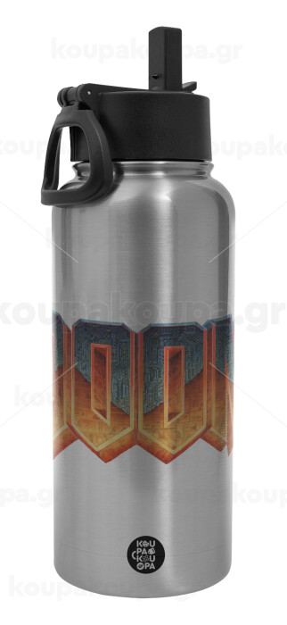 DOOM, Metal mug thermo Silver with Straw and Spout Lid (Stainless steel), double wall, 950ml