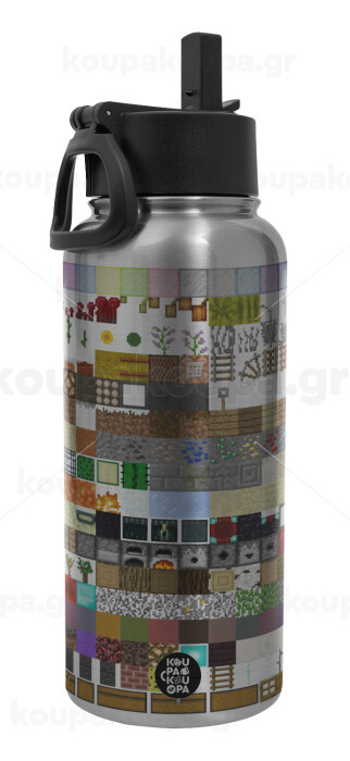 Minecraft blocks, Metal mug thermo Silver with Straw and Spout Lid (Stainless steel), double wall, 950ml