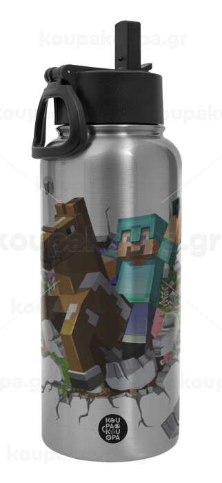 Minecraft brick, Metal mug thermo Silver with Straw and Spout Lid (Stainless steel), double wall, 950ml