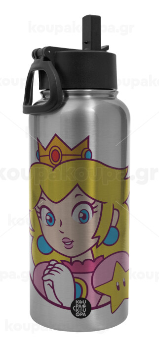 Princess Peach, Metal mug thermo Silver with Straw and Spout Lid (Stainless steel), double wall, 950ml