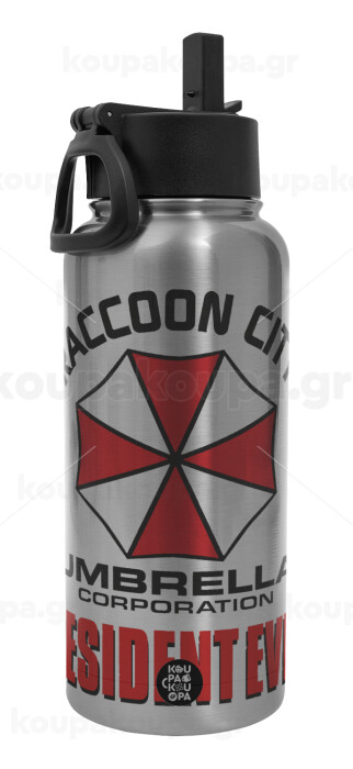 Resident Evil, Metal mug thermo Silver with Straw and Spout Lid (Stainless steel), double wall, 950ml