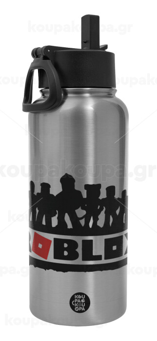 Roblox team, Metal mug thermo Silver with Straw and Spout Lid (Stainless steel), double wall, 950ml
