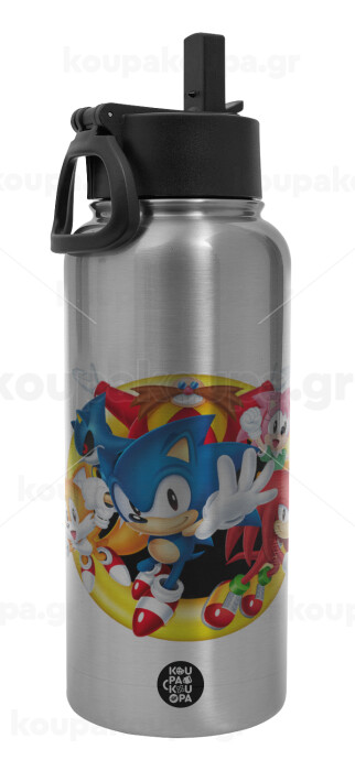 Sonic and friends, Metal mug thermo Silver with Straw and Spout Lid (Stainless steel), double wall, 950ml