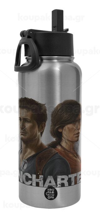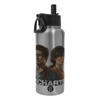 Uncharted, Metal mug thermo Silver with Straw and Spout Lid (Stainless steel), double wall, 950ml