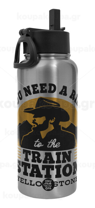 You need a ride to the train station, Metal mug thermo Silver with Straw and Spout Lid (Stainless steel), double wall, 950ml