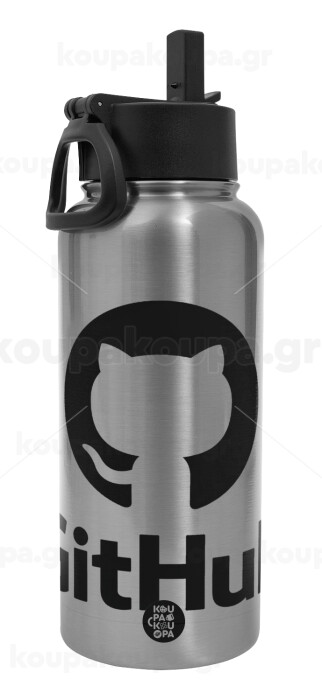 GitHub, Metal mug thermo Silver with Straw and Spout Lid (Stainless steel), double wall, 950ml