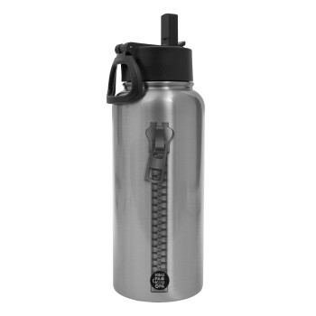 Zipper, Metal mug thermo Silver with Straw and Spout Lid (Stainless steel), double wall, 950ml