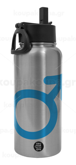 MALE, Metal mug thermo Silver with Straw and Spout Lid (Stainless steel), double wall, 950ml