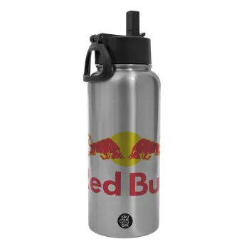 Redbull, Metal mug thermo Silver with Straw and Spout Lid (Stainless steel), double wall, 950ml