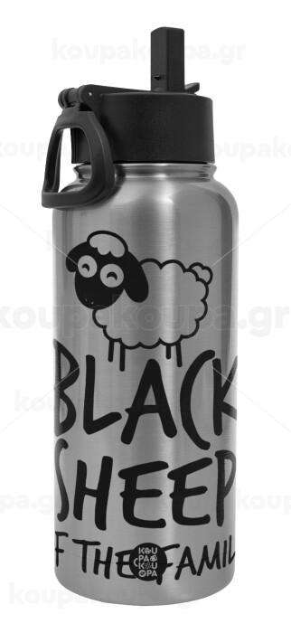 Black Sheep of the Family, Metal mug thermo Silver with Straw and Spout Lid (Stainless steel), double wall, 950ml