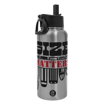 Size matters, Metal mug thermo Silver with Straw and Spout Lid (Stainless steel), double wall, 950ml