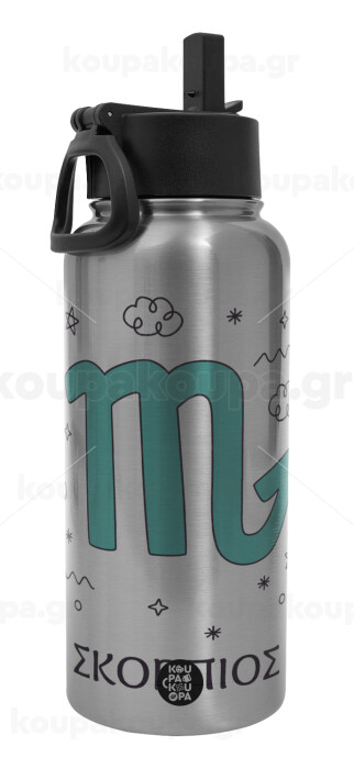 Ζώδια Σκορπιός, Metal mug thermo Silver with Straw and Spout Lid (Stainless steel), double wall, 950ml