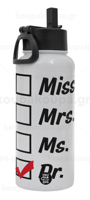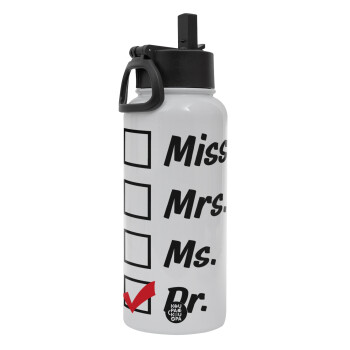 Miss, Mrs, Ms, DR, Metal mug thermo White with Straw and Spout Lid (Stainless steel), double wall, 950ml