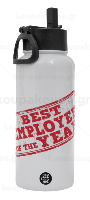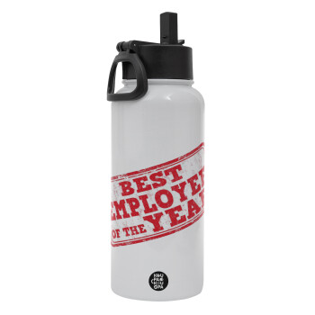 Best employee of the year, Metal mug thermo White with Straw and Spout Lid (Stainless steel), double wall, 950ml