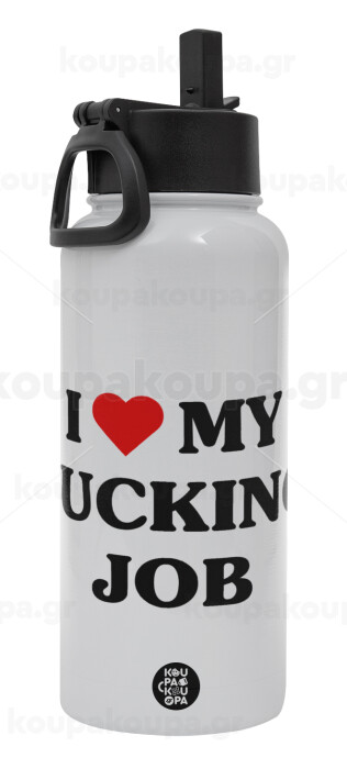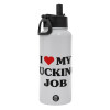 I love my fucking job, Metal mug thermo White with Straw and Spout Lid (Stainless steel), double wall, 950ml