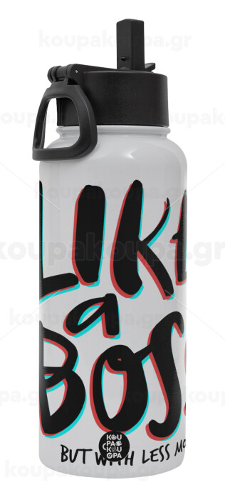 Like a boss, but with less money!!!, Metal mug thermo White with Straw and Spout Lid (Stainless steel), double wall, 950ml