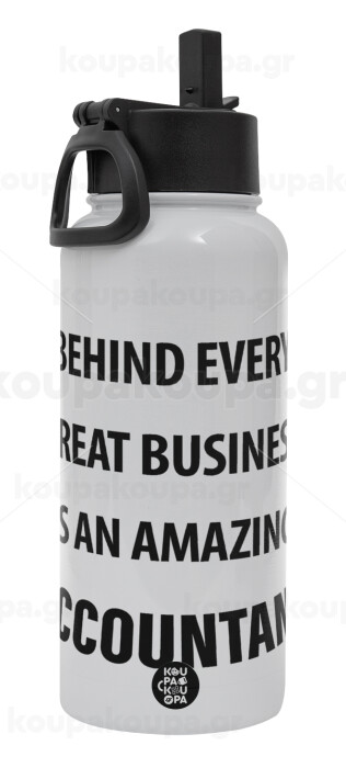 Behind every great business, Metal mug thermo White with Straw and Spout Lid (Stainless steel), double wall, 950ml