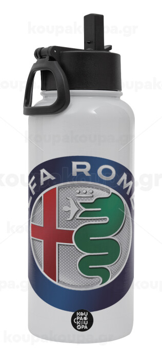 Alfa Romeo, Metal mug thermo White with Straw and Spout Lid (Stainless steel), double wall, 950ml