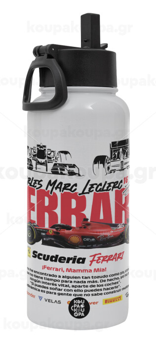 F1 Ferrari, Metal mug thermo White with Straw and Spout Lid (Stainless steel), double wall, 950ml