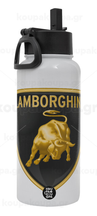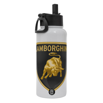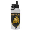Lamborghini, Metal mug thermo White with Straw and Spout Lid (Stainless steel), double wall, 950ml