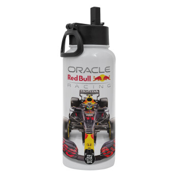 Redbull Racing Team F1, Metal mug thermo White with Straw and Spout Lid (Stainless steel), double wall, 950ml