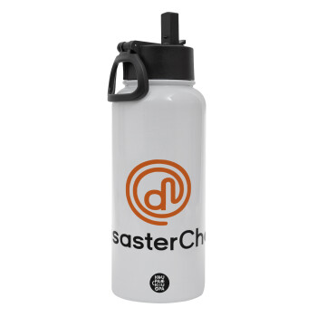 Disaster Chef, Metal mug thermo White with Straw and Spout Lid (Stainless steel), double wall, 950ml