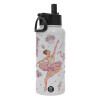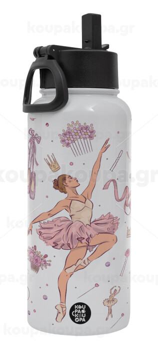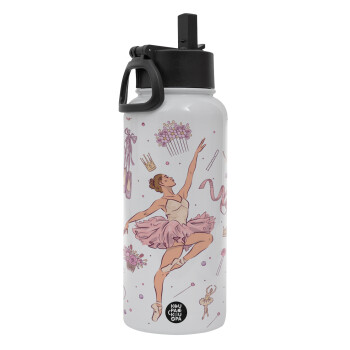 Ballet Dancer, Metal mug thermo White with Straw and Spout Lid (Stainless steel), double wall, 950ml