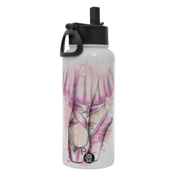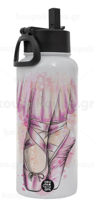 Ballerina shoes, Metal mug thermo White with Straw and Spout Lid (Stainless steel), double wall, 950ml