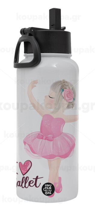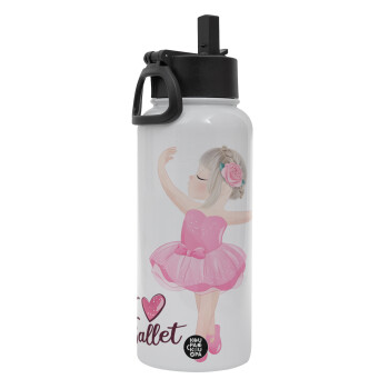 I Love Ballet, Metal mug thermo White with Straw and Spout Lid (Stainless steel), double wall, 950ml