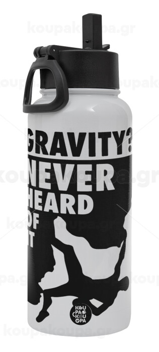 Gravity? Never heard of that!, Metal mug thermo White with Straw and Spout Lid (Stainless steel), double wall, 950ml