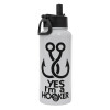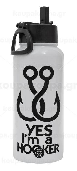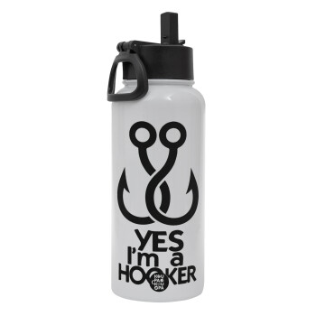 Yes i am Hooker, Metal mug thermo White with Straw and Spout Lid (Stainless steel), double wall, 950ml