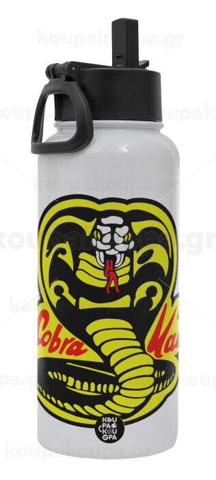 Cobra Kai Yellow, Metal mug thermo White with Straw and Spout Lid (Stainless steel), double wall, 950ml