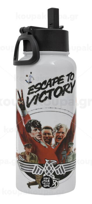 Escape to victory, Metal mug thermo White with Straw and Spout Lid (Stainless steel), double wall, 950ml