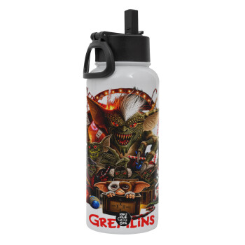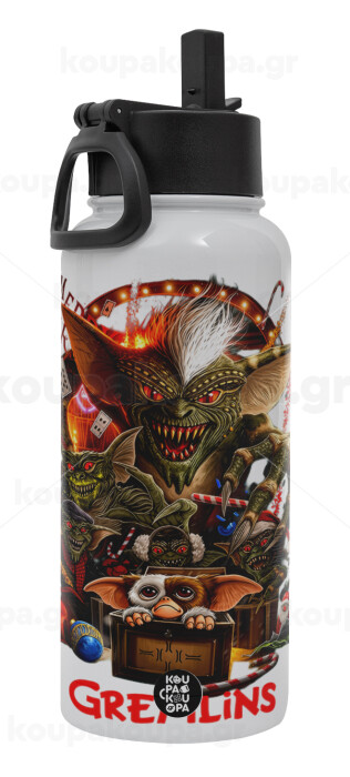Gremlins, Metal mug thermo White with Straw and Spout Lid (Stainless steel), double wall, 950ml