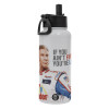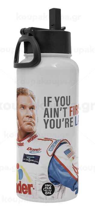 If You Ain't First You're Last Ricky Bobby, Talladega Nights, Metal mug thermo White with Straw and Spout Lid (Stainless steel), double wall, 950ml