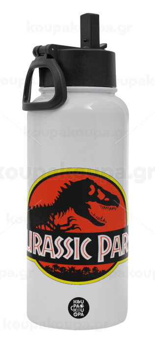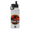 Jurassic park, Metal mug thermo White with Straw and Spout Lid (Stainless steel), double wall, 950ml