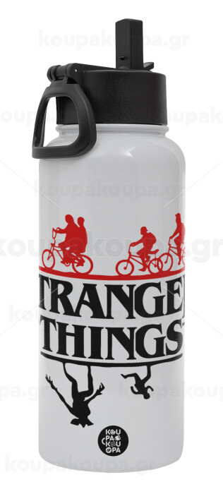 Stranger Things upside down, Metal mug thermo White with Straw and Spout Lid (Stainless steel), double wall, 950ml