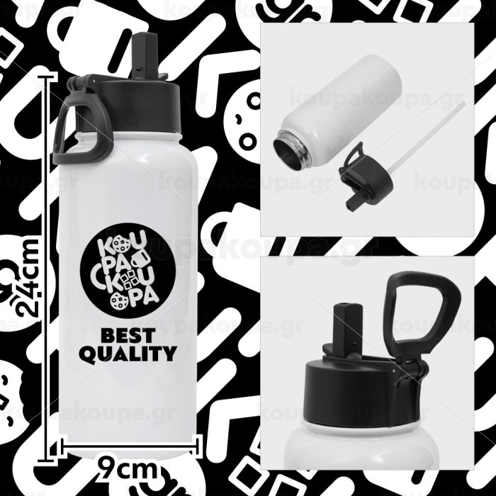 Thermal bottle with double walls, foldable spout, and foldable handle and straw. Discover the ideal bottle for each of your adventures! The Koupakoupa with a capacity of 950 ml has double insulation walls that keep your drinks cool or warm for longer. It is made of high-quality stainless steel and BPA-free plastic, ensuring your safety and hygiene. With a practical straw, foldable spout, and wide handle, it is the ultimate accessory for your everyday life. Secure yours today and enjoy the comfort and quality you deserve!
