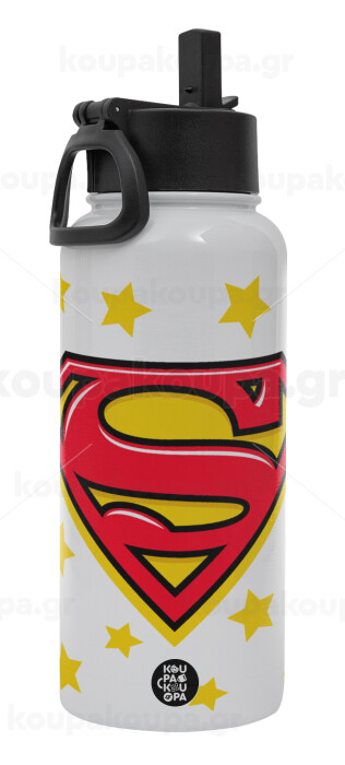 Superman Blue, Metal mug thermo White with Straw and Spout Lid (Stainless steel), double wall, 950ml