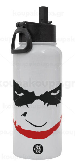 The joker smile, Metal mug thermo White with Straw and Spout Lid (Stainless steel), double wall, 950ml