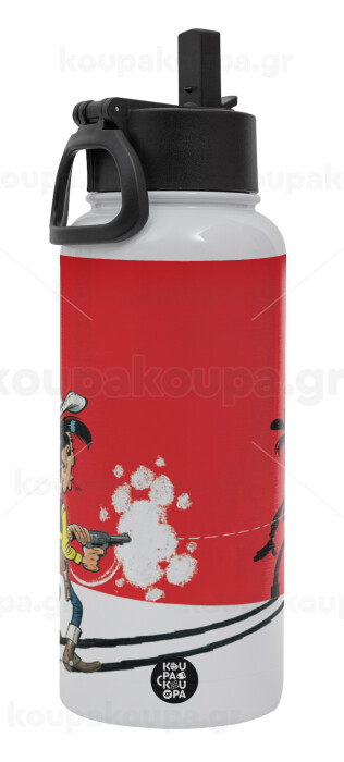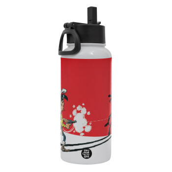 Lucky Luke shadows, Metal mug thermo White with Straw and Spout Lid (Stainless steel), double wall, 950ml