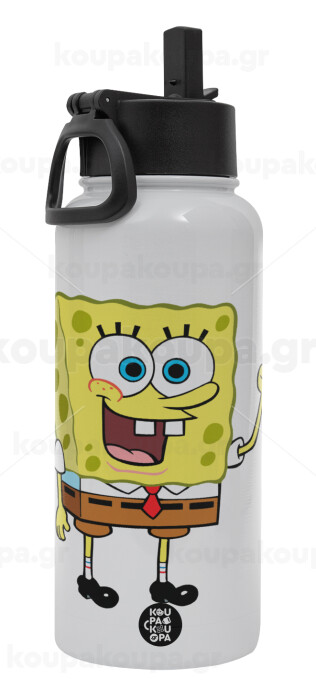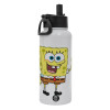 SpongeBob SquarePants character, Metal mug thermo White with Straw and Spout Lid (Stainless steel), double wall, 950ml