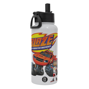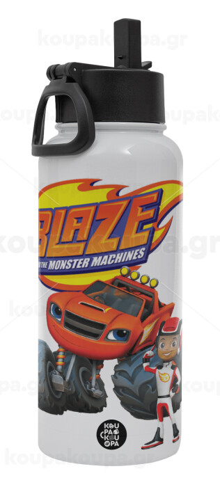 Ο Μπλέιζ και οι Φίλοι του, Metal mug thermo White with Straw and Spout Lid (Stainless steel), double wall, 950ml
