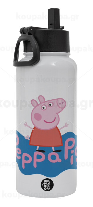 Πέππα το γουρουνάκι μπλε με όνομα, Metal mug thermo White with Straw and Spout Lid (Stainless steel), double wall, 950ml