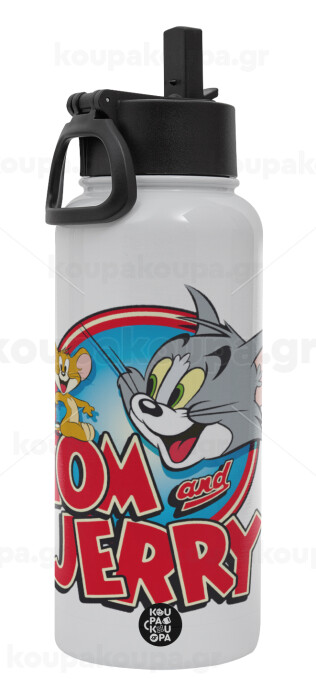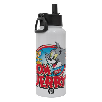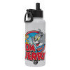 Tom and Jerry, Metal mug thermo White with Straw and Spout Lid (Stainless steel), double wall, 950ml