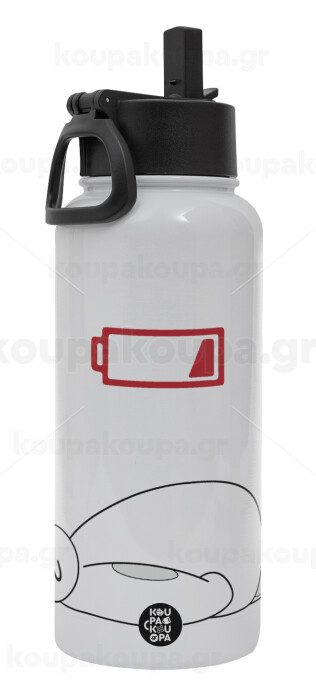 Baymax battery low, Metal mug thermo White with Straw and Spout Lid (Stainless steel), double wall, 950ml