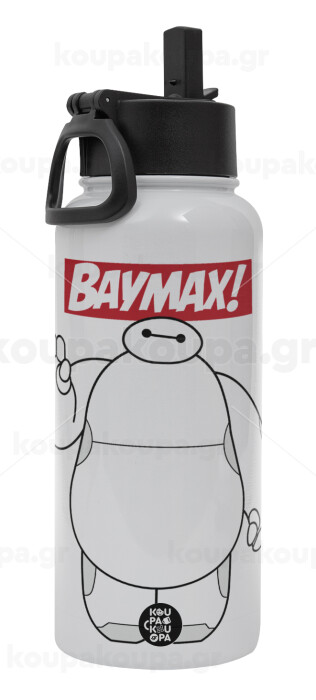 Baymax hi, Metal mug thermo White with Straw and Spout Lid (Stainless steel), double wall, 950ml