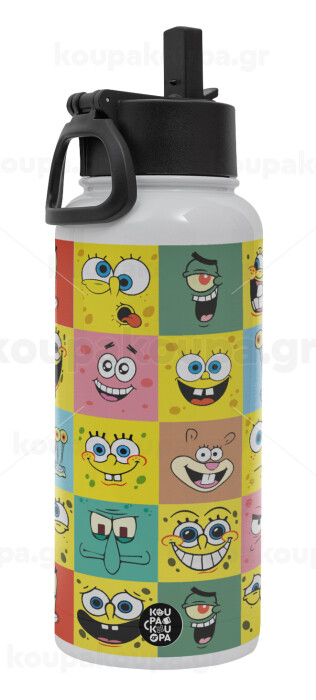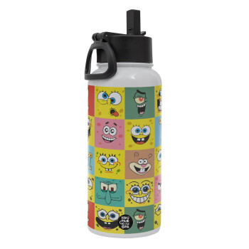 BOB spongebob and friends, Metal mug thermo White with Straw and Spout Lid (Stainless steel), double wall, 950ml