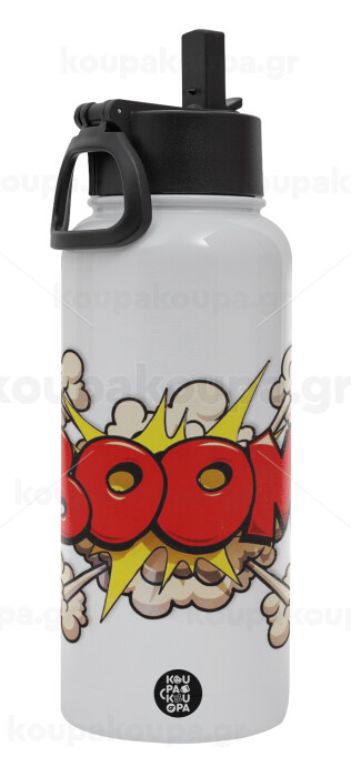 BOOM!!!, Metal mug thermo White with Straw and Spout Lid (Stainless steel), double wall, 950ml